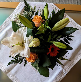 Diese weißen Lilien in dem orange gehaltenen Blumenstrauß haben mich sehr erfreut.
